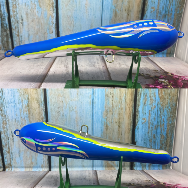 The Trilogy range brings you a new & refined construction method focusing on durability & performance to take your fishing to the next level. Where typical floating stickbait’s are best suited to calmer conditions the NEREUS’S versatility has been refined over the course of 18 months to bring you a floating stickbait that can be thrown in all conditions. Long sweeps with pauses are perfect for calmer conditions giving the lure an eccentric zig-zag action creating a bubble trail to entice fish even if they aren’t on the bite. For rougher conditions short stabbing consistent sweeps will hold the lure just under the surface while still maintaining the zig-zag action however slightly more subtle.